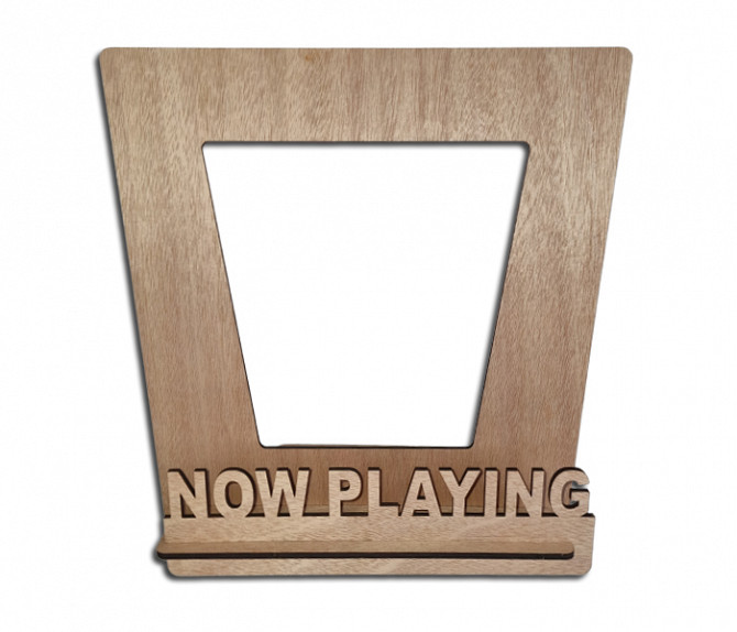 Підставка для вінілових платівок з надписом "Now Playing".