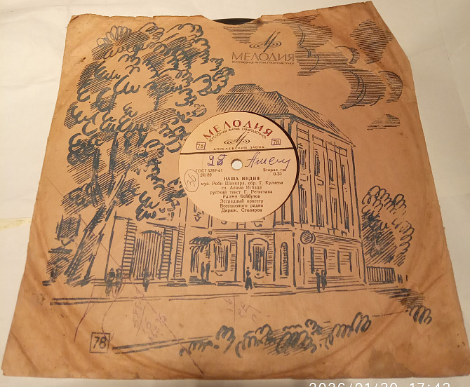 Продам грампластинку 1961г. Б/У. Песни из кинофильма "Бродяга" Состояние на фото. Цена 20грн.Продаю как есть , без негатива. Доставка любым первозчиком.
