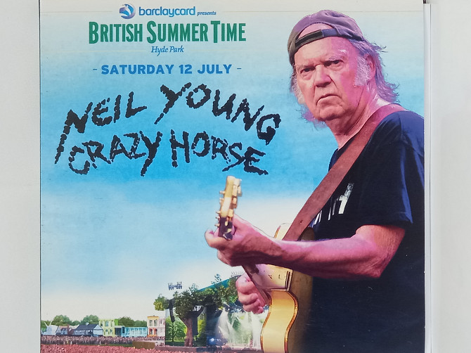 Neil Young and Crazy Horse have been announced as headliners for 2014's Barclaycard presents BRITISH SUMMER TIME Hyde Park. The gig, part of the Barclaycard presents BRITISH SUMMER TIME series of gigs, featured a number of lesser known tracks from Young’s catalogue, along with a handful of classics and a new song. Young arrived on stage just before 8pm along with Crazy Horse members Frank ‘Poncho’ Sampedro and Ralph Molina, as well as Rick Rosas, standing in for Billy Talbot who recently suffered a stroke, and two backing singers. They immediately began playing ‘'Love And Only Love'’ from their 1990 album ‘Ragged Glory’. Two more songs from that album, Neil Young And Crazy Horse’s sixth together, the others being ‘'Days That Used To Be'’ and ‘'Love To Burn'’. They also played ‘'Barstool Blues'’, from 1975’s Zuma. Young's first big date for 2014 follows a series of cancelled shows this year. Back in August, Young called off seven British and European gigs to give Crazy Horse guitarist Frank ''Poncho'' Sampedro time to heal his fractured hand, before scrapping the rest of their world tour. Playing the penultimate BRITISH SUMMER TIME show for 2014, Neil Young and Crazy Horse put on a typically eclectic, jam-packed show for fans. The event saw more than 50,000 festival-goers in London’s Hyde Park for a day of live music and entertainment. Here were just ten of our highlights. After The Gold Rush marked the first full sing-along of the evening; 68-year-old Young dipping into his bag of hits for this 1970 classic with little notice. Thankfully Hyde Park had warmed up their vocal chords and were ready to help this number along. At the edge of the stage, Young’s unlikely mascot became an extra member of the band as he went over to consult and then touch the American Indian statue between songs. Crazy Horses indeed. On the back of a big sing-along for ''Only Love Can Break Your Heart'', a surprise cover of ''Blowin’ In The Wind'' left Hyde Park overcome with emotion as the master doffed his hat to a fellow master. Apparently not a favourite with Dylan, ''Heart Of Gold'' would become Neil Young’s only chart-topping single in the US and his solo rendition sounded just as heart-felt and honest as the original cut, some 43 years on. From Palestine to environmental conservation, Young used tracks like ''Rockin’ In The Free World'' and ''Who’s Gonna Stand Up And Save The Earth?'' to continue the good fight, and perhaps convert some hearts and minds in the process. The Crazy Horse band were in full stride for this rousing hit from their debut album with Neil Young, the 1969 classic Everybody Knows This Is Nowhere. Young looked at ease with long time collaborators Crazy Horse, who returned to the UK after cancelling shows in 2013, bringing a classic line-up: Frank ‘Poncho’ Sampedro, and two founding members Billy Talbot and Ralph Molina. The extended jams and dirty rock grooves just kept on coming, and coming.