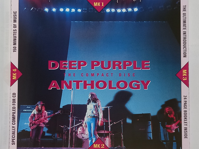 ANTHOLOGY is a compilation album by the English hard rock band Deep Purple, containing material by MK I (1968–1969), MK II (1969–1973), MK III (1973–1975) and MK IV (1975–1976) line-ups. It was released as a double vinyl album and double-cassette in June 1985, and included a few previously unreleased tracks and mixes. This compilation was never re-issued on CD. A 2-CD set, released by EMI on 15th Fenruary 1991, was titled THE COMPACT DISC ANTHOLOGY, but featured different songs and only previously released material. The first made-for-compact disc Deep Purple collection, THE COMPACT DISC ANTHOLOGY offers a satisfying, extended glimpse at the seminal English hard rockers without the extra fat of the comprehensive Shades quadruple box set. And despite THE COMPACT DISC ANTHOLOGY's mid-80's cutoff date surprisingly little essential material is omitted from this set. Five tracks from the mostly forgotten Mark I lineup make the cut, including the group's first charting single "Hush," but are quickly and summarily eclipsed by the arrival of Gillan and Glover on such timeless classics as "Black Night," "Child In Time," "Strange Kind Of Woman," "Highway Star," etc. Curiously, the ubiquitous "Smoke On The Water" is featured here in its Made In Japan live version, rather than the studio original - a decision which may upset some consumers. Finally, ten mostly well-picked examples of the David Coverdale-fronted Mark III formation bring the set to a close.