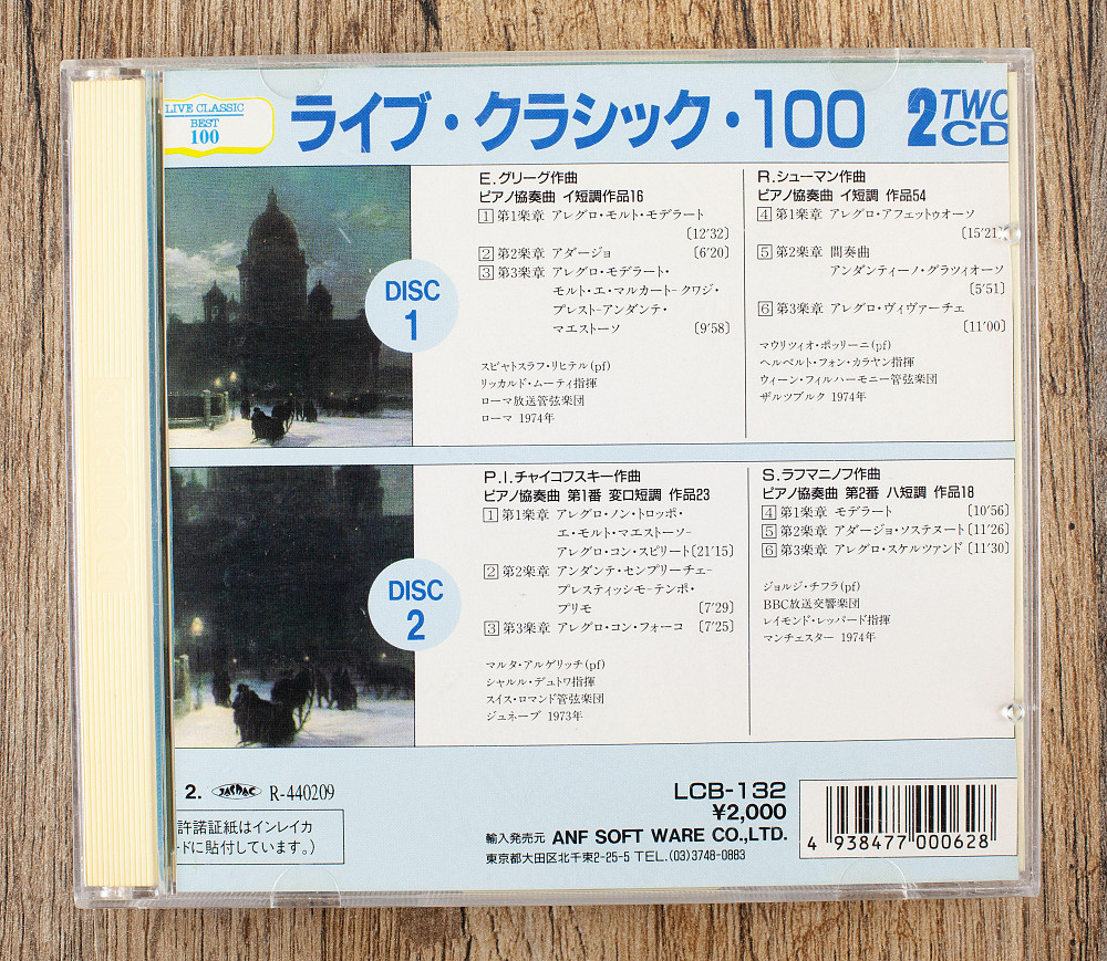 Подвійний CD із серії «Live Classic 100» із фортепіанними концертами. Перший диск містить концерти Гріга і Шумана, другий - концерти Чайковського №1 і Рахманінова №2. Усі записи концертні, виконані видатними піаністами: Святославом Ріхтером, Мауріціо Полліні, Мартою Аргеріх і Дьордем Чіффрою з відомими диригентами в період 1973-1974 років.