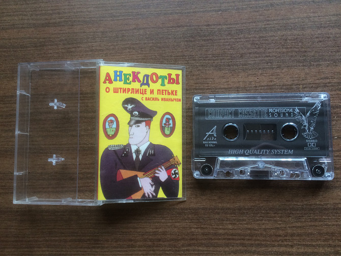 Выставляю на продажу б/у музыкальный сборник на кассете "Анекдоты о Штирлице и Петьке с Василь Иванычем".
