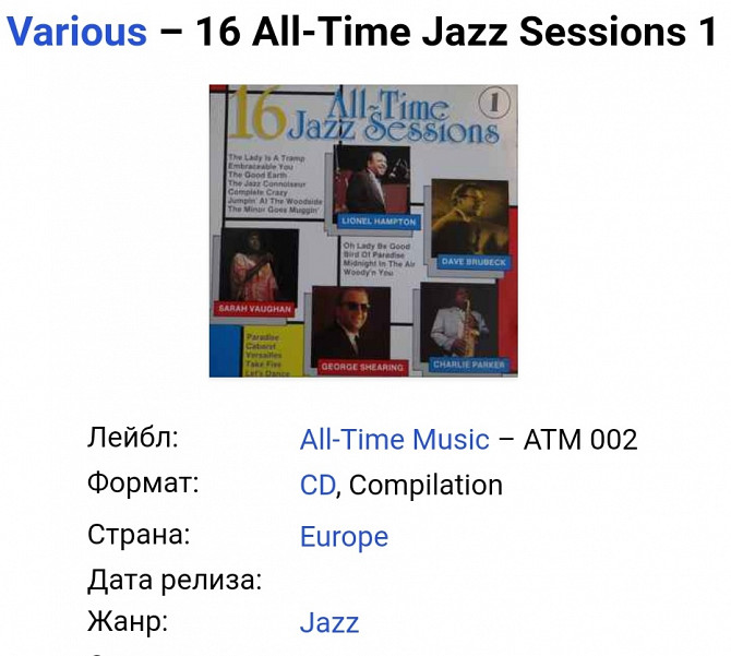 Фирменный сборник виртуозов джаза. Первый в серии из 10 дисков. В наличии первые три. Состояние NM. Дополнительные фото по требованию.
