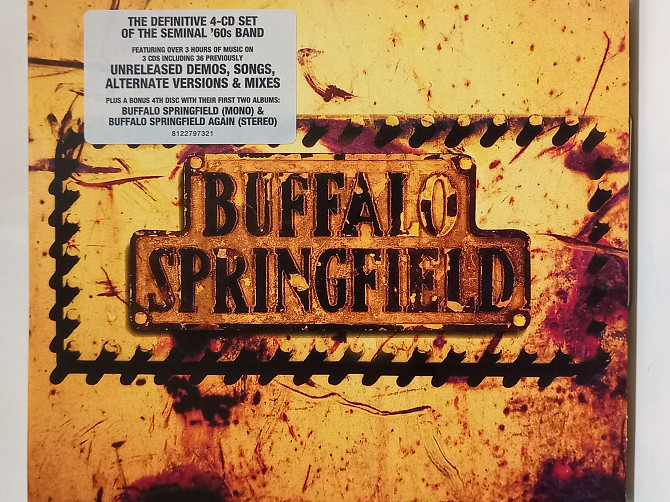 BUFFALO SPRINGFIELD BOX SET is a career retrospective album by the 1960s folk rock band of the same name, released in July 17, 2001. Band member Neil Young assembled the tracks in chronological order to show how the band evolved and disintegrated in the span of two years, as encompassed through the first three CDs, while the fourth disc contains the band's first two albums, all but three tracks of which had already appeared in identical versions elsewhere on the first three discs. This set takes the listener through the band's chronological journey - testimony that their prolific and esteemed output within two short years far outshone what some groups barely achieve in a lifetime. Featuring demos, alternates, outtakes and studio masters, this four disc compendium is a must-have for any fan of this seminal band, whose influence cannot be overestimated.