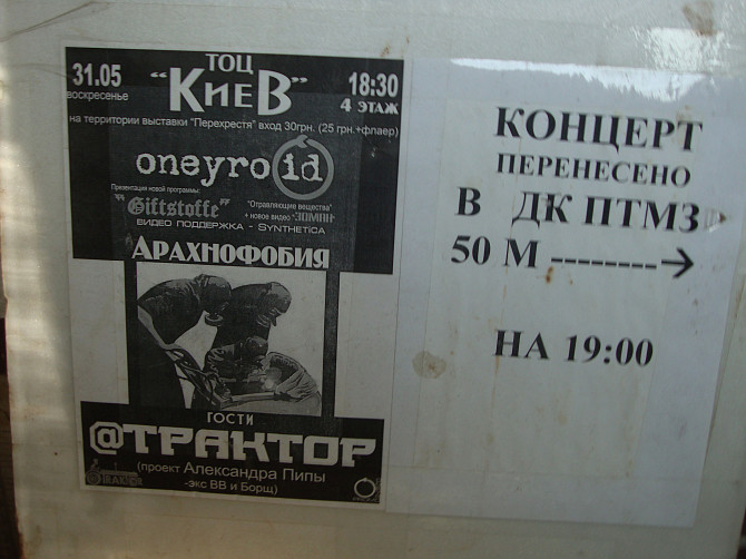 Дивом збережений, гібридний вказівник-афіша з першого спільного концерту полтавських авторитетів андеграунду і нової (на той час) групи легендарного Сашка Піпи - ATTRAKTOR. Автентичний документ. Задовільний стан.