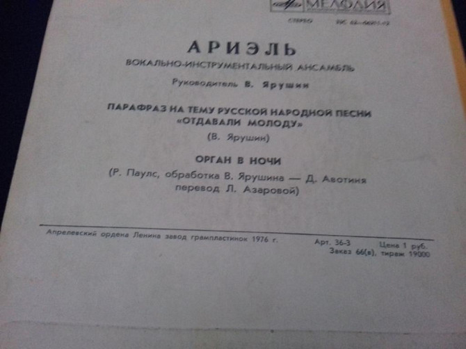 159.1638 folk rock.Ариэль.отдавали молоду.1977 м- 7"