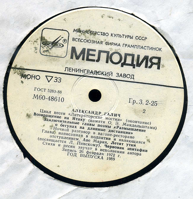 АЛЕКСАНДР ГАЛИЧ - Стихи и песни М60---48607_08 USSR 1989