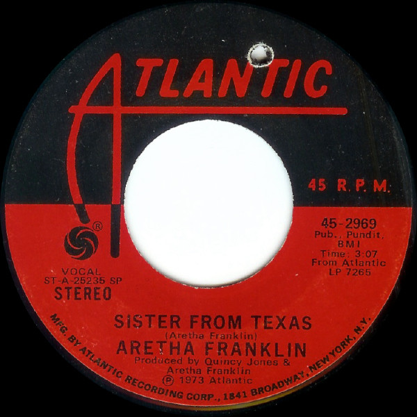Aretha Franklin – Angel / Sister From Texas (Atlantic – 45-2969, 7", 45 rpm, Specialty pressing, USA, 1973).