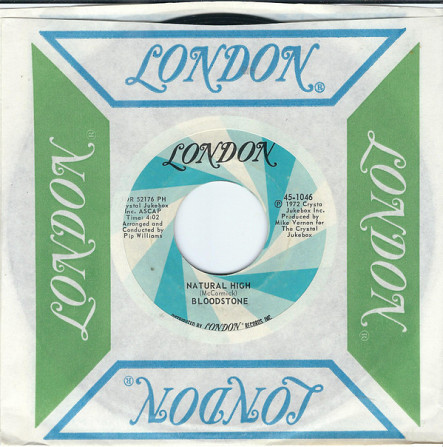 Bloodstone ‎– Natural High / Peter's Jones (London Records ‎– 45-1046, 7", 45 rpm, single, styrene, Presswell pressing, USA, 1973).