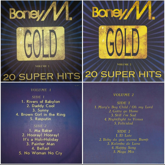 Оригинальная виниловая пластинка. Двадцать первый студийный каталожный сборный альбом из лучших хитов Германской Диско-Поп группы Boney M - Gold. 20 Super Hits - 1976-85. Выпущено неизвестной фирмой в России в1993-ем году. Издание из двух пластинок (двух частей). Состояние пластинок NM/EX+. Конверты ламинированые. Состояние конвертов EX+. Отправляем Новой Почтой, Деливери, Укр Почтой /Предоплата/ (На выбор покупателя), возможна отправка за границу.