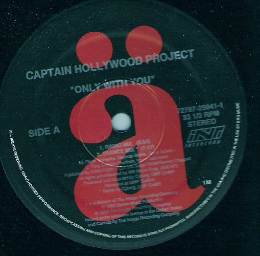 Приветствую любителей старого и доброго Eurodance. Предлагаю вашему вниманию оригинальную, фирменную пластинку Captain Hollywood Project - Only With You. Лейбл ä, Intercord,