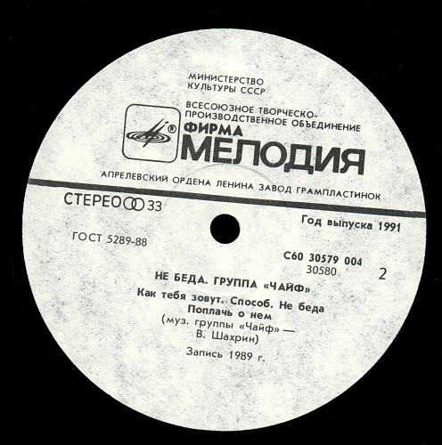 Чайф - Не Беда - 1989. (LP). 12. Vinyl. Пластинка.