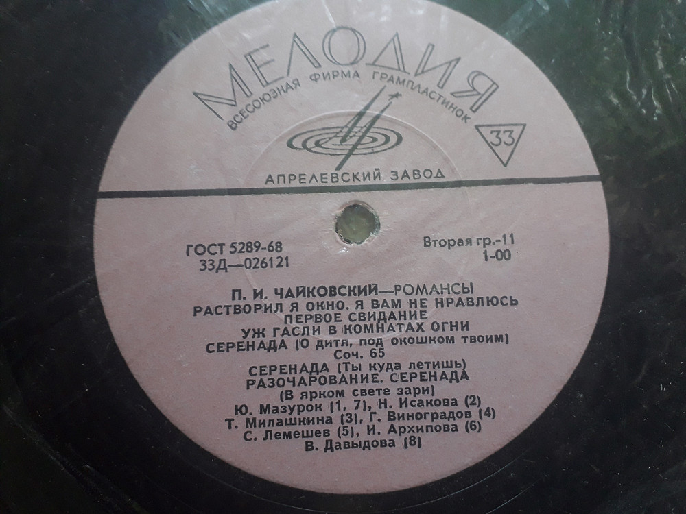Пластинки П. Чайковский - Романсы 6LP (1969, Мелодия 33Д 026111, Моно, АЗГ)