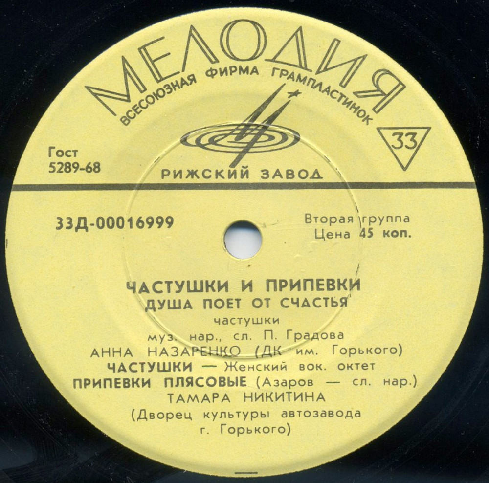Пластинка-флекси ЧАСТУШКИ И СТРАДАНИЯ Мария Мордасова, Шароха, Тамара Голькова и Екатерина Сосина