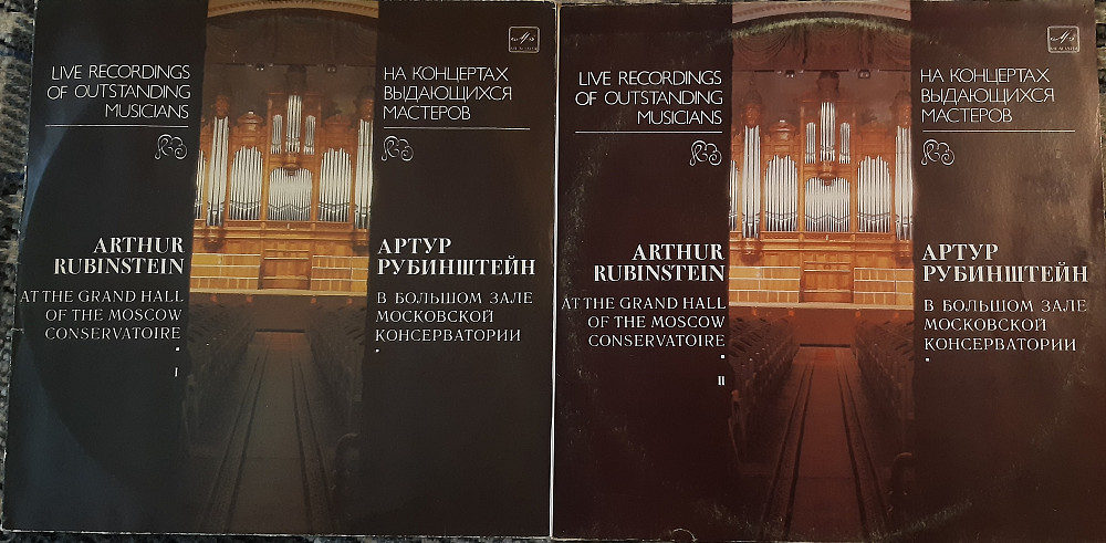 Дві платівки із серії "На концертах выдающихся мастеров". Записи живого виступу славетного піаніста Артура Рубінштейна у москві 1964 року. Стан платівок - Ex+. Дві платівки: