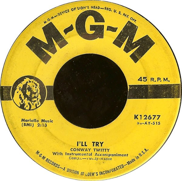 Conway Twitty ‎– It's Only Make Believe / I'll Try (MGM Records ‎– K12677, 7", 45 rpm, single, USA, 1958).