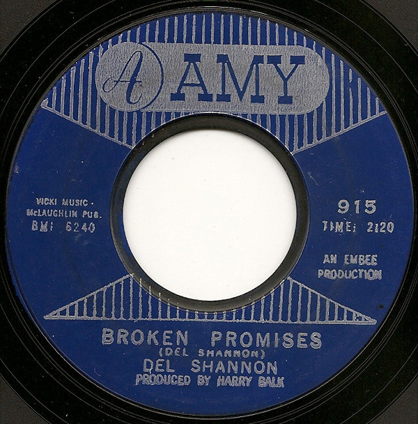 Del Shannon – Keep Searchin' (We'll Follow The Sun) / Broken Promises (Amy – 915, 7", 45 rpm, single, USA, 1964).