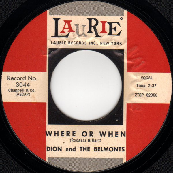 Dion And The Belmonts – Where Or When / That's My Desire (Laurie Records – 3044, 7", single, USA, 1959).