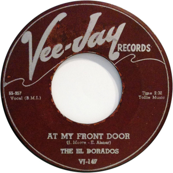 El Dorados ‎– At My Front Door / What's Buggin' You Baby (Vee Jay Records ‎– VJ-147, 7", 45 rpm, single, USA, 1955).