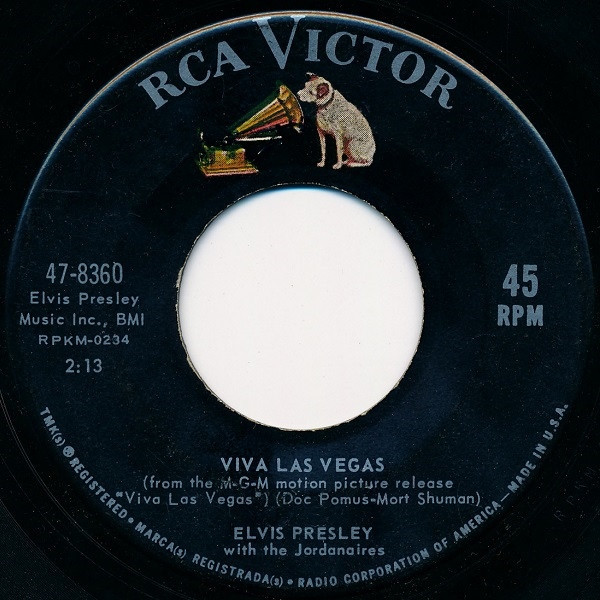 Elvis Presley ‎– Viva Las Vegas / What'd I Say (RCA Victor ‎– 47-8360, 7", 45 rpm, single, Indianapolis pressing, USA, 1964).