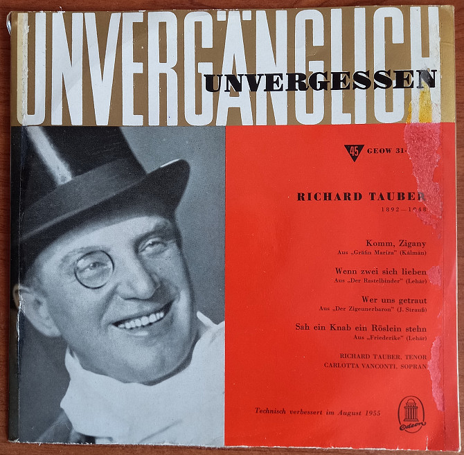 EP Рихард Таубер "Арии и дуэты из оперетт" в серии "Бессмертное незабываемое", Германия, 1956 год