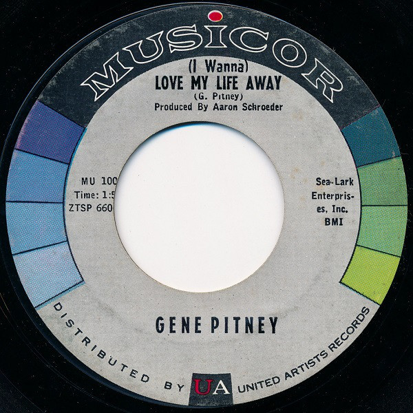Gene Pitney – (I Wanna) Love My Life Away / I Laughed So Hard I Cried (Musicor Records – MU 1002, 7", 45 RPM, SingleUSA, 1960).
