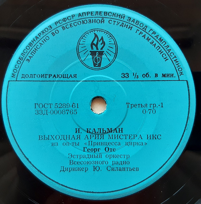 Георг Отс – Выходная Ария Мистера Икс из Оп-ты "Принцесса Цирка" (7", Mono, Рига ) 1969 ЕХ+