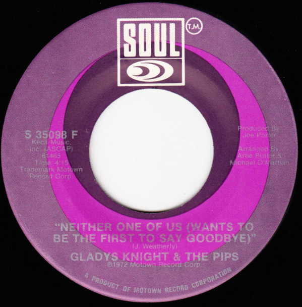 Gladys Knight And The Pips – Neither One Of Us (Wants To Be The First To Say Goodbye) / Can't Give It Up No More (Soul – S 35098 F, 7", 45 rpm, single, USA, 1972).