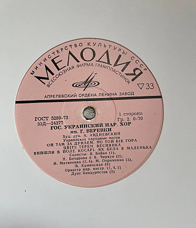 Гос. Украинский Нар. Хор Им. Г. Веревки – Украинские Народные Песни 10" LP