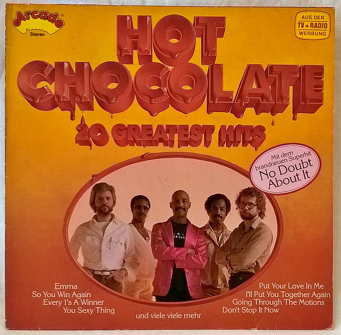 Оригинальная фирменная виниловая пластинка. Сборный студийный каталожный альбом из лучших хитов легендарной Британской поп-группы Hot Chocolate – 20 Greatest Hits - 1974-79. Выпущено фирмой (Arcade Records) Germany В 1979-ом году. Пластинка в отличном состоянии, относится к категории EX+. Конверт глянцевый. Состояние конверта ЕХ+. Отправляем Новой Почтой, Деливери, Укр Почтой /Предоплата/ (На выбор покупателя), возможна отправка за границу.