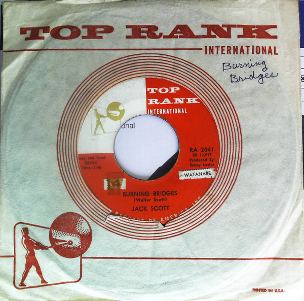 Jack Scott ‎– Burning Bridges / Oh, Little One (Top Rank International ‎– RA-2041, 7", single, USA, 1960).