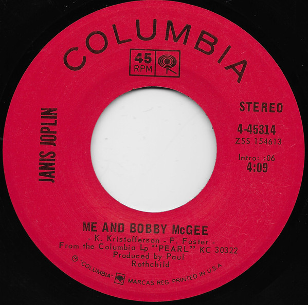 Janis Joplin – Me And Bobby McGee / Half Moon (Columbia – 4-45314, 7", 45 rpm, stereo, Santa Maria pressing, USA, 1971).