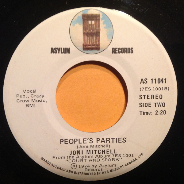 Joni Mitchell ‎– Free Man In Paris / People's Parties (Asylum Records ‎– AS 11041, 7", single, Canada, 1974).