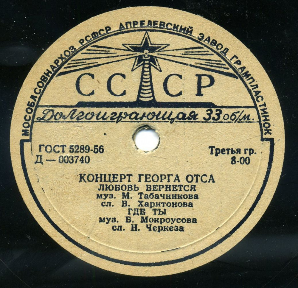 Пластинка Георг Отс – ЛЮБОВЬ ВЕРНЕТСЯ * Где ты * В День рождения * Родные Глаза (1957) экспорт USSR