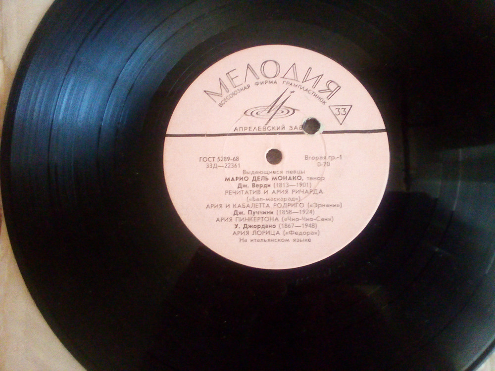 Пластинка Марио Дель Монако - ЛЕОНКАВАЛЛО * Пуччини * Верди / оркестр Большого театра, Мелик-Пашаев