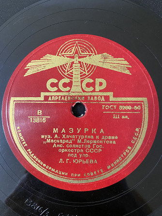 Виниловая пластинка. "Мазурка", "Вальс" муз.Хачатуряна к драме "Маскарад" М.Лермонтов