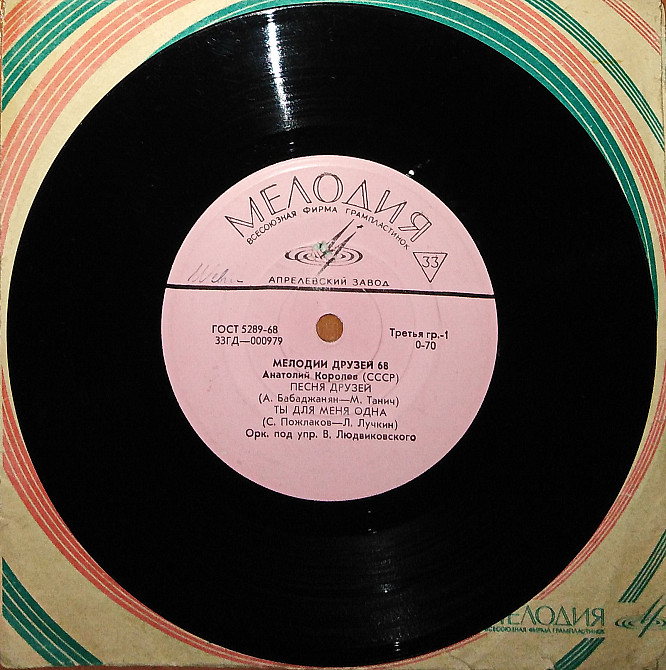 Пластинка-флекси МЕЛОДИИ ДРУЗЕЙ-68 - Анатолий Королев - ПЕСНЯ ДРУЗЕЙ * Ты для меня одна * Крыши (Ех)