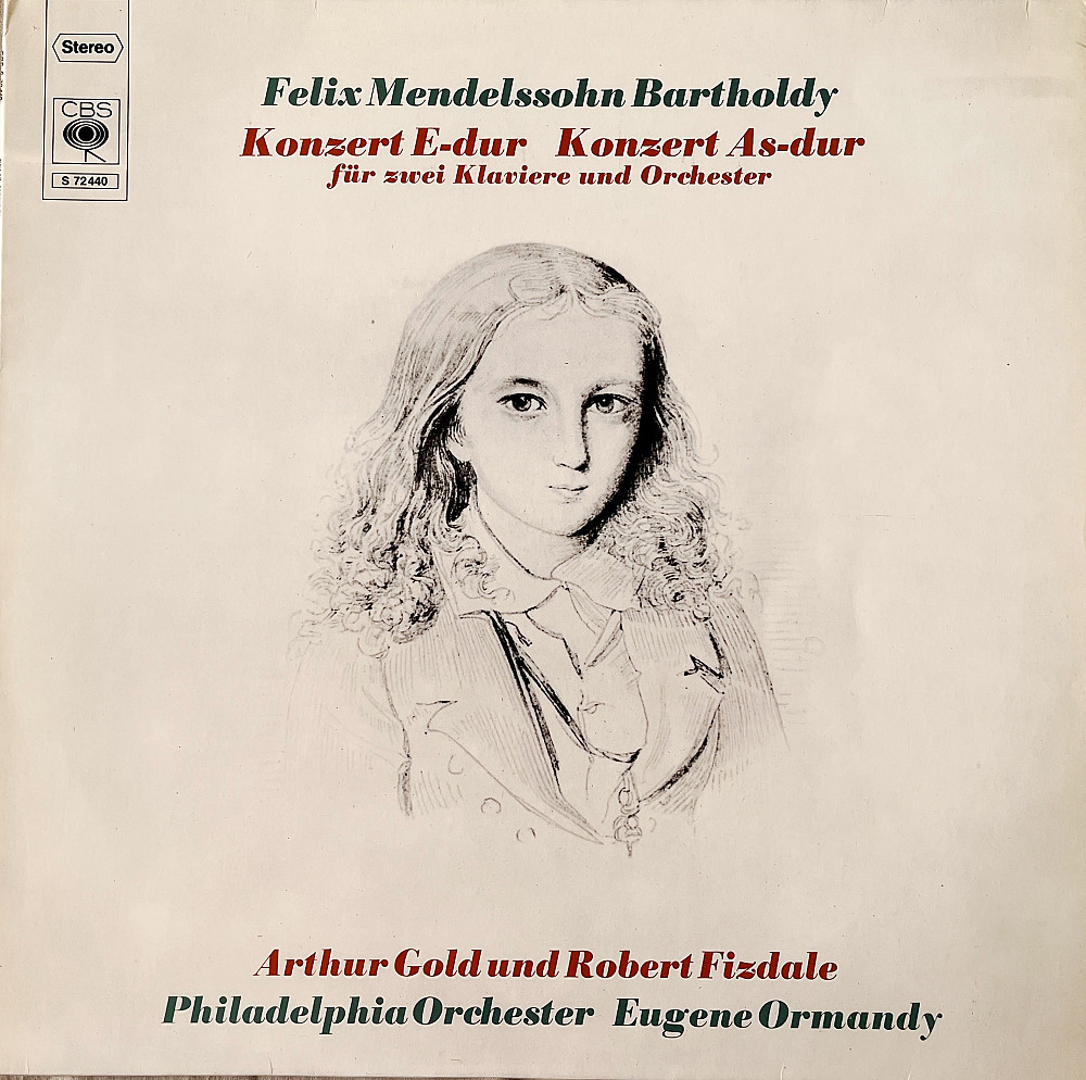 Felix Mendelssohn Bartholdy / Arthur Gold, Robert Fizdale, Philadelphia Orchester, Eugene Ormandy – Konzert E-Dur / Konzert As-Dur Für Zwei Klaviere Und Orchester. Концерти Фелікса Мендельсона для двох фортепіано та оркестру, виконує Philadelphia Orchester, Eugene Ormandy. Платівки виробництва Німеччини, лейбл CBS, стан - Ex.