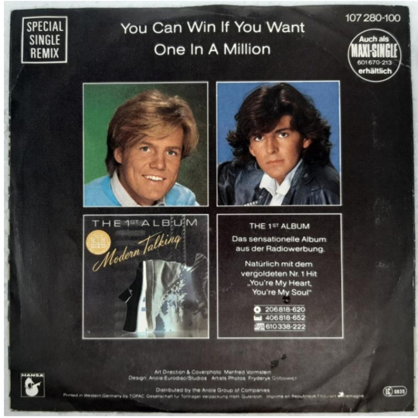 Modern Talking ‎– You Can Win If You Want (Special Single Remix) 1985. (EP). 7. Vinyl. Пластинка. Ge