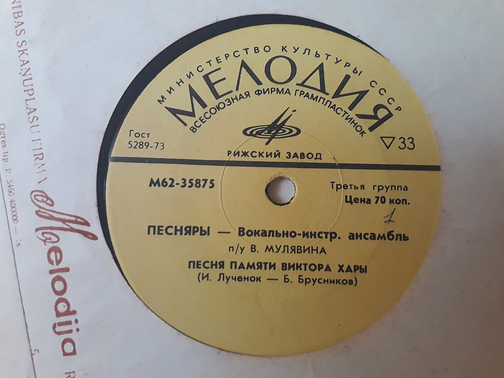 Пластинка Виа ''Песняры'' - Песня памяти Виктора Хары * В воскресенье, раненько * Парень пашню пашет