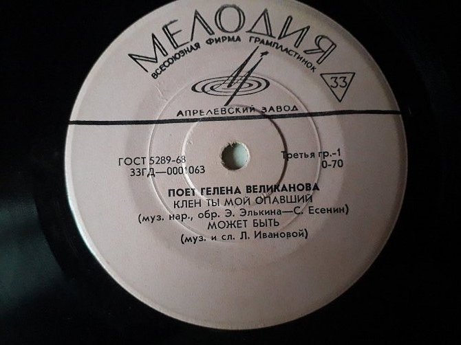 Пластинка-флекси Гелена Великанова – БУБЕНЦЫ * И льется песня * Ты запой мне эту песню (1970) Ех+
