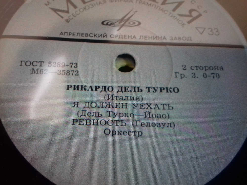 Пластинка-флекси Рикардо Дель Турко (Италия) - ИЮЛЬ * Гроза * Я должен уехать * Ревность (1974) Ех+