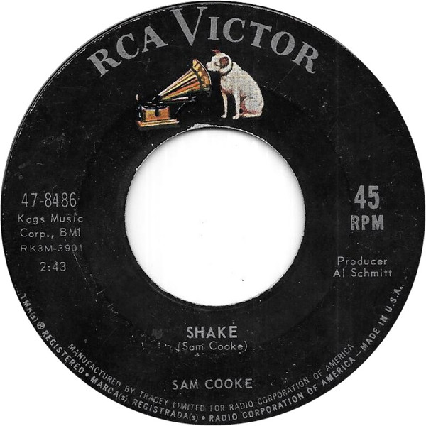 Sam Cooke – Shake / A Change Is Gonna Come (RCA Victor – 47-8486, 7", single, 45 rpm, Rockaway pressing, USA, 1964).