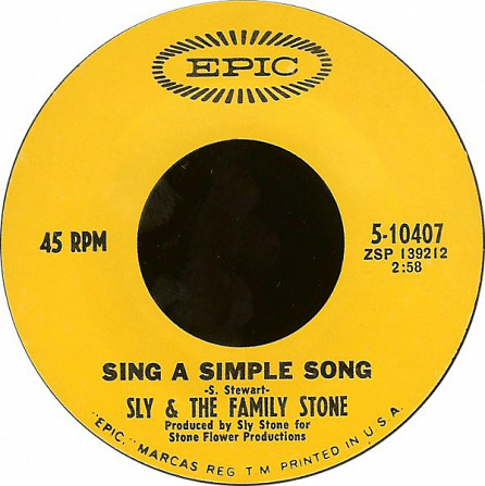 Sly & The Family Stone ‎– Everyday People / Sing A Simple Song (Epic ‎– 5-10407, 7", single, 45 rpm, Terre Haute pressing, USA, 1968).