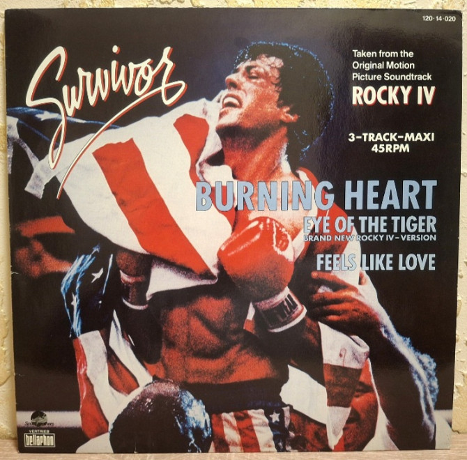 Вінілова платівка. Максі сингл (ЕР 12). Саундтрек. Музика з популярного кінофільму, за участю легендарного Американського кіноактора Сільвестра Сталлоне (Роккі ІV Burning Heart) 1985. Випуск фірми (Scotti Bros. Records) Germany, 1985-ий рік. Оригінальне, першопресове видання. Стан платівки ЕХ+. Стан конверту ЕХ+. Відправка по Україні службами доставки: Нова Пошта, Укр Пошта, Делівері. Також відправляємо посилки за кордон по цілому світу.