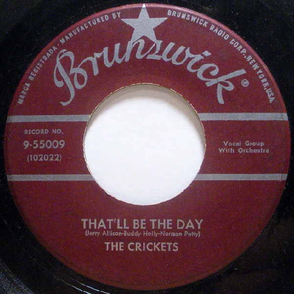 The Crickets – That'll Be The Day / I'm Lookin' For Someone To Love (Brunswick – 9-55009, 7", 45 rpm, single, Gloversville pressing, USA, 1957).