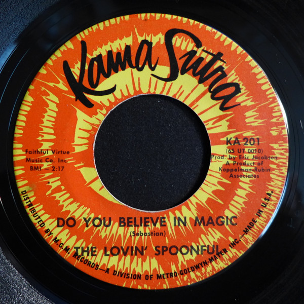 The Lovin' Spoonful – Do You Believe In Magic / On The Road Again (Kama Sutra – KA201, 7", single, 45 rpm, USA, 1965).