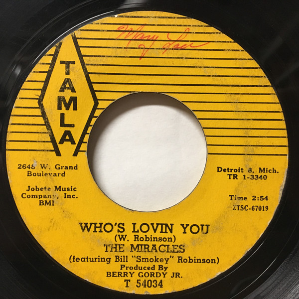 The Miracles – Shop Around / Who's Lovin You (Tamla – T-54034, 7", 45 rpm, single, styrene, Columbia press, USA, 1960).