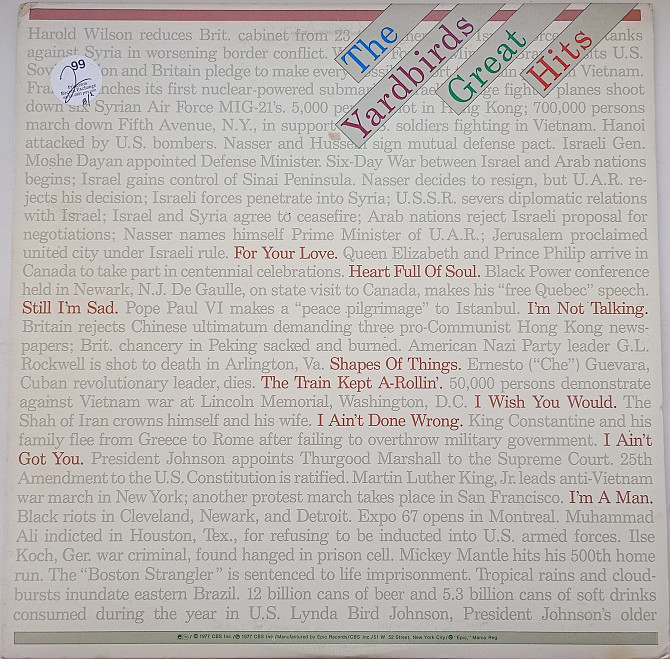 VG (very good - дуже добра) Конверт потертий, можливий яскраво виражений контур плити в вигляді кільця (slight wear),шви можуть розійтися ,але панелі конверта остаточно не відокремилися один від одного. Плита виглядає вже не дуже добре , але все ж може доставляти задоволення своїм звучанням. Є подряпини, клацання, але голка на них не скаче.