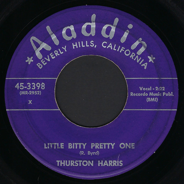 Thurston Harris And The Sharps – Little Bitty Pretty One / I Hope You Won't Hold It Against Me (Aladdin – 45-3398, 7", 45 rpm, single, purple label, USA, 1957).